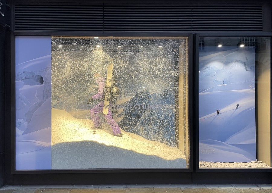 For 2025, the campaign theme was “Worn When It Counts”. Arc’teryx wanted a window display that conveyed the dramatic atmosphere of a winter storm while remaining practical for a live store environment.
